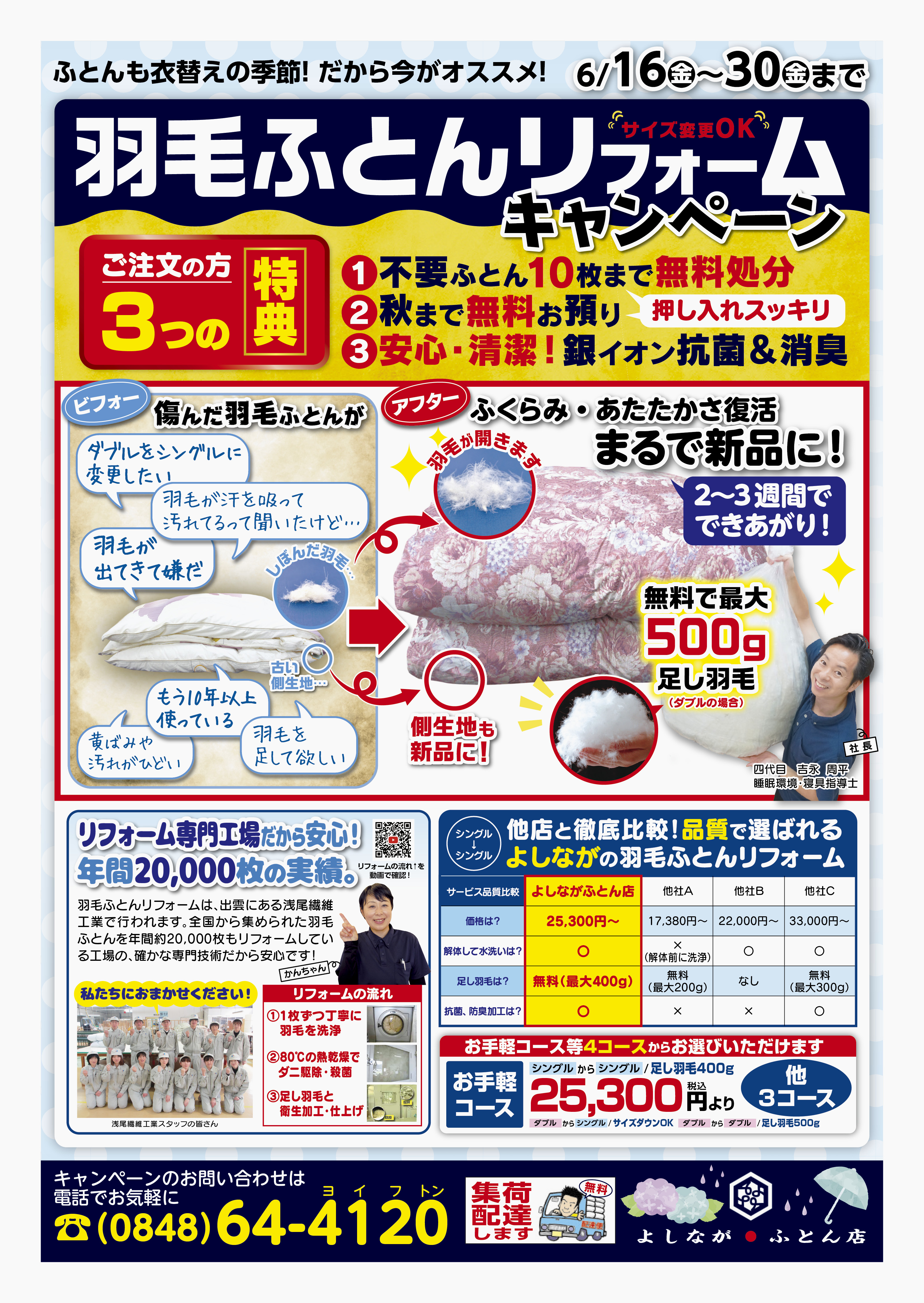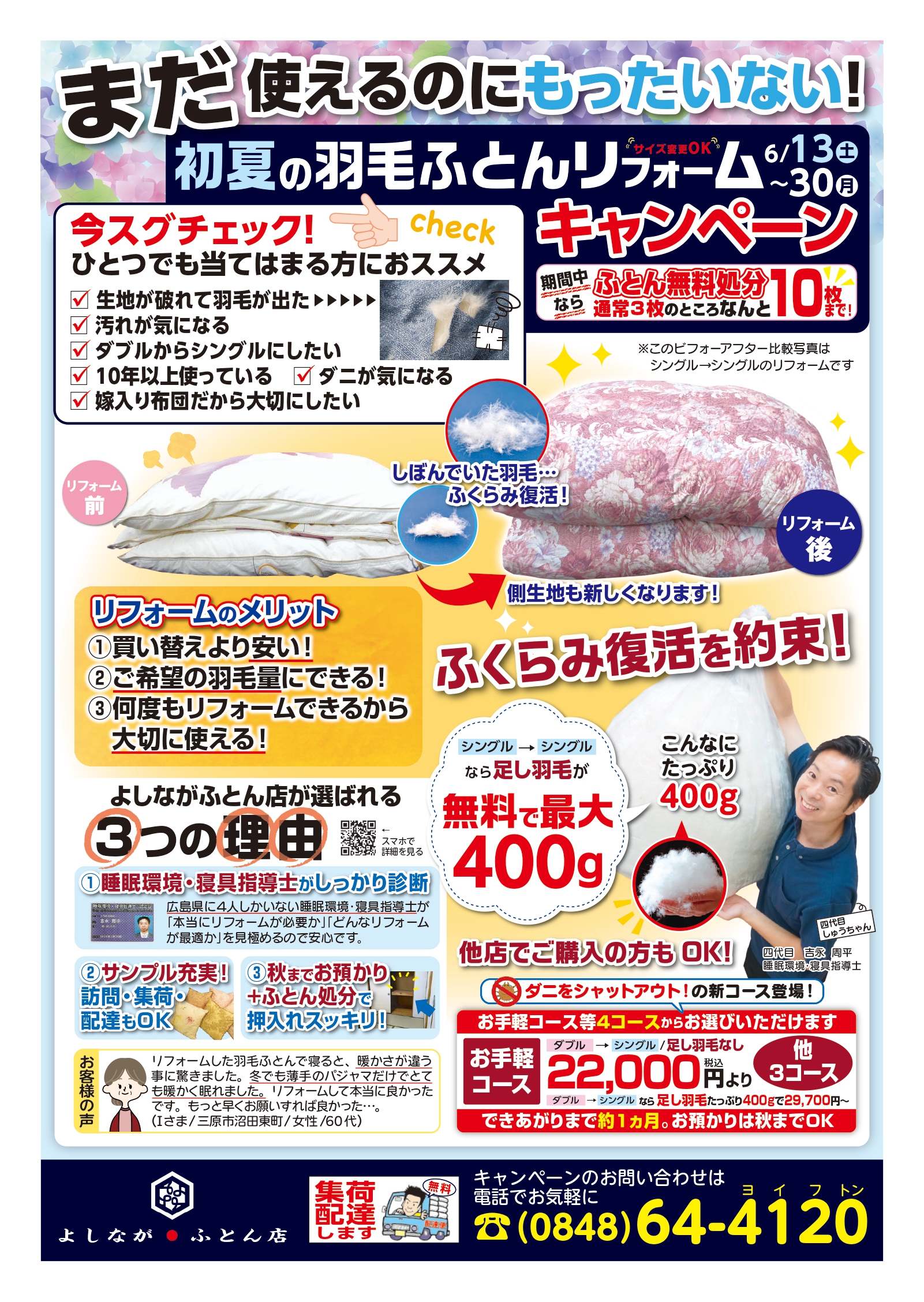 羽毛ふとんリフォームキャンペーンin2023の6月