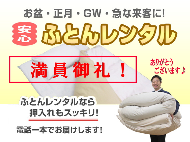 年末年始のふとんレンタルの受付は終了致しました。ありがとうございました。